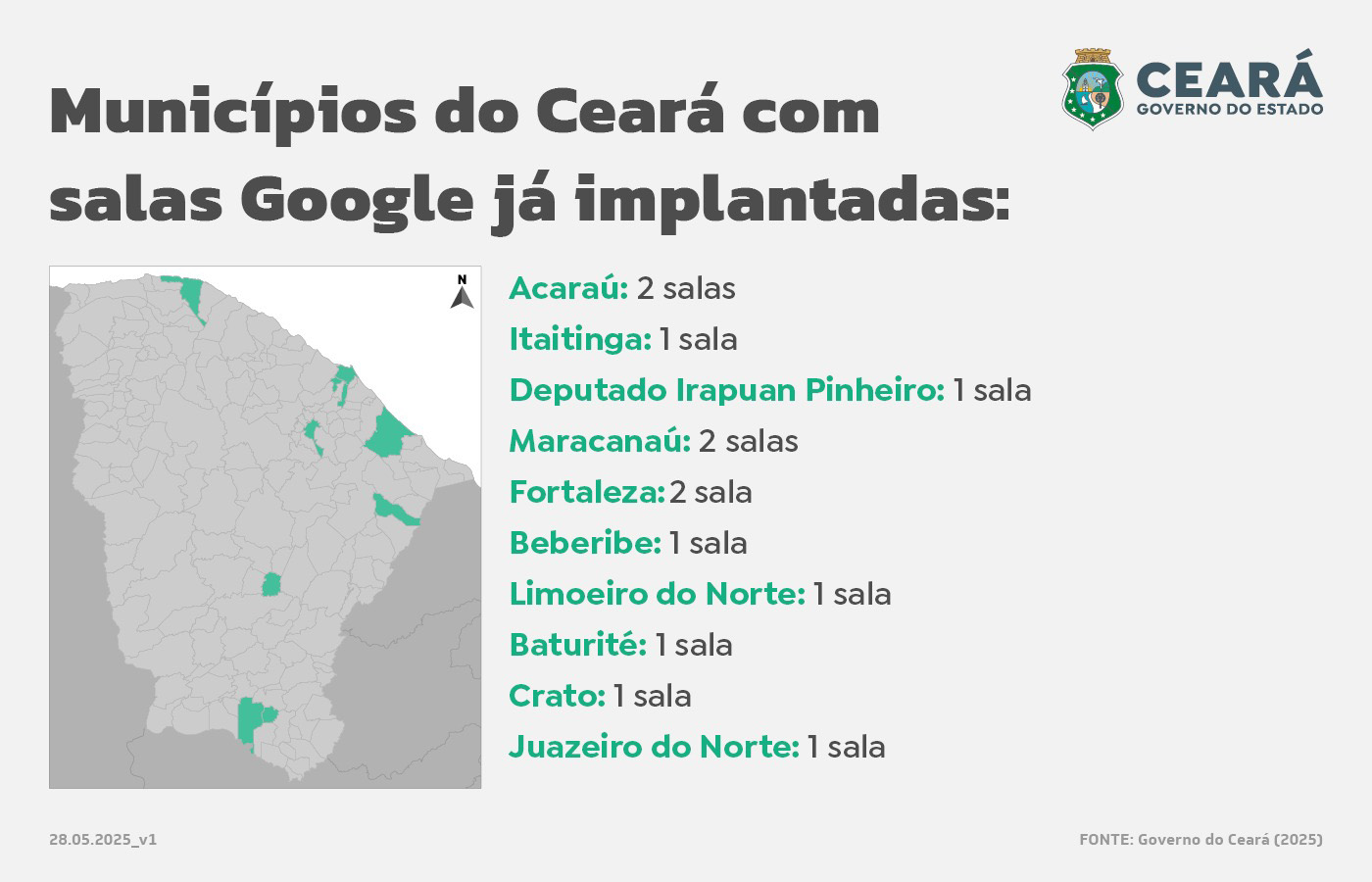 Com a inauguração desta unidade, o Ceará passa a contar com 13 Salas Google já em funcionamento, distribuídas em cidades como Acaraú, Itaitinga, Maracanaú, Fortaleza, Baturité, Beberibe, Limoeiro do Norte, Crato, Juazeiro do Norte e Deputado Irapuan Pinheiro.