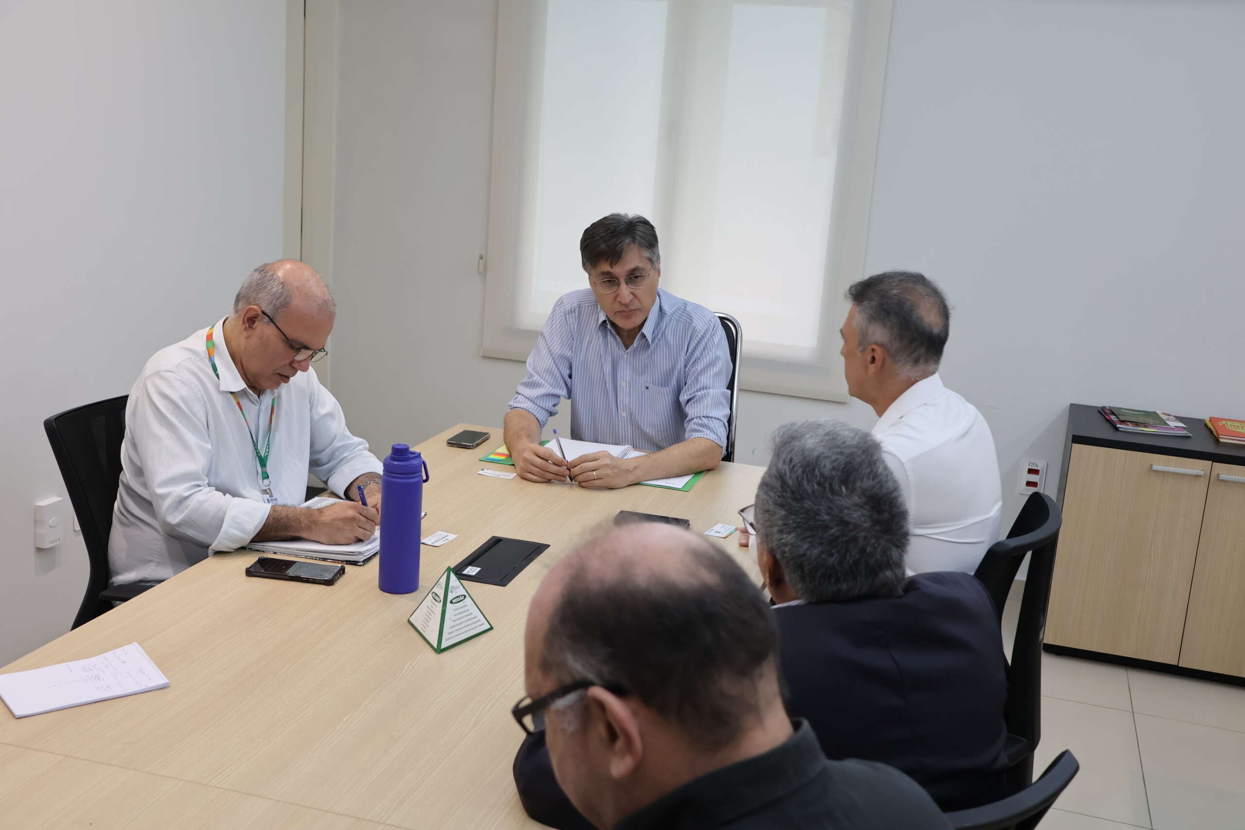 O presidente da Empresa de Tecnologia da Informação do Ceará (Etice), Hugo Figueirêdo, recebeu nesta quarta-feira (26) o diretor de Atendimento de Governo da Intel no Brasil, Cristian Oliveira, para a discussão de projetos de interesse comum entre as duas entidades. Participaram do encontro o professor Joaquim Celestino Júnior, presidente do Instituto de Estudos, Pesquisas e Projetos (Iepro) da Universidade Estadual do Ceará (Uece); Sandoval Bastos, da assessoria da Presidência de Etice e Ênio Azevedo, gerente de Serviços e Infraestrutura Própria da Etice.