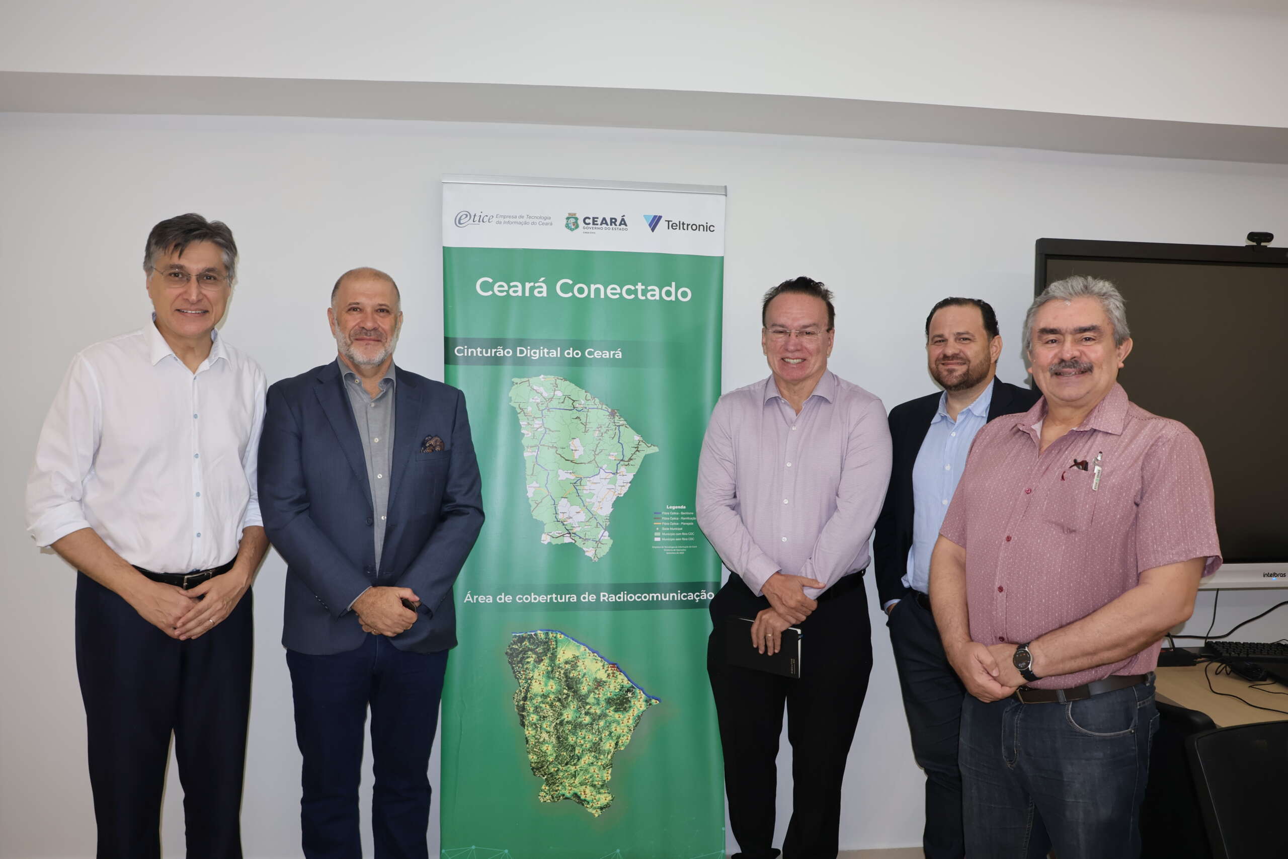 O presidente da Empresa de Tecnologia da Informação do Ceará (Etice), Hugo Figueirêdo, recebeu nesta quinta-feira (8) o presidente da Telebras, André Leandro, em visita institucional. Também participaram do encontro o gerente de Planejamento e Marketing da Telebras, Leandro Albuquerque, e, pela Etice, o diretor Técnico Danilo Reis Vasconcelos e o gerente de Operações do Cinturão Digital, Álvaro Maia.