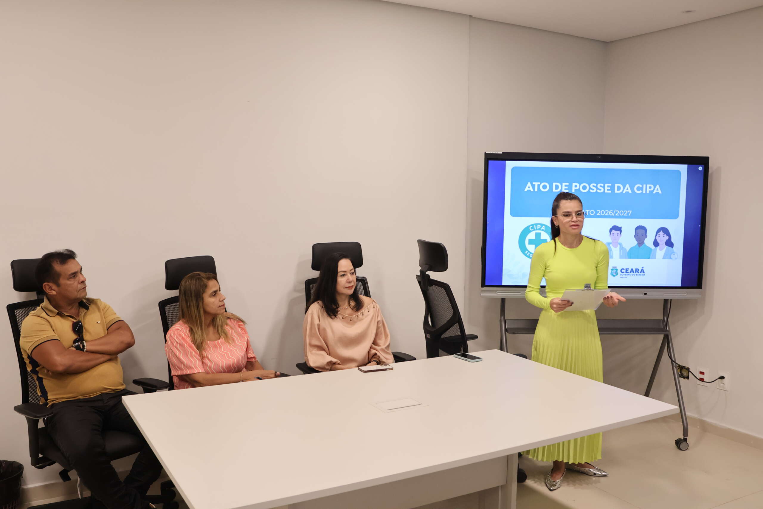 A Empresa de Tecnologia da Informação do Ceará (Etice) realizou, nesta sexta-feira (27), por meio de sua Gerência de Qualidade, Segurança, Meio Ambiente e Saúde (GEQSMS) em parceria com a Gerência de Pessoas (GEPES), a posse dos eleitos de sua primeira Comissão Eleitoral da Comissão Interna de Prevenção de Acidentes e de Assédio (Cipa). O ato ocorreu pela manhã, na sala de treinamentos da Empresa.