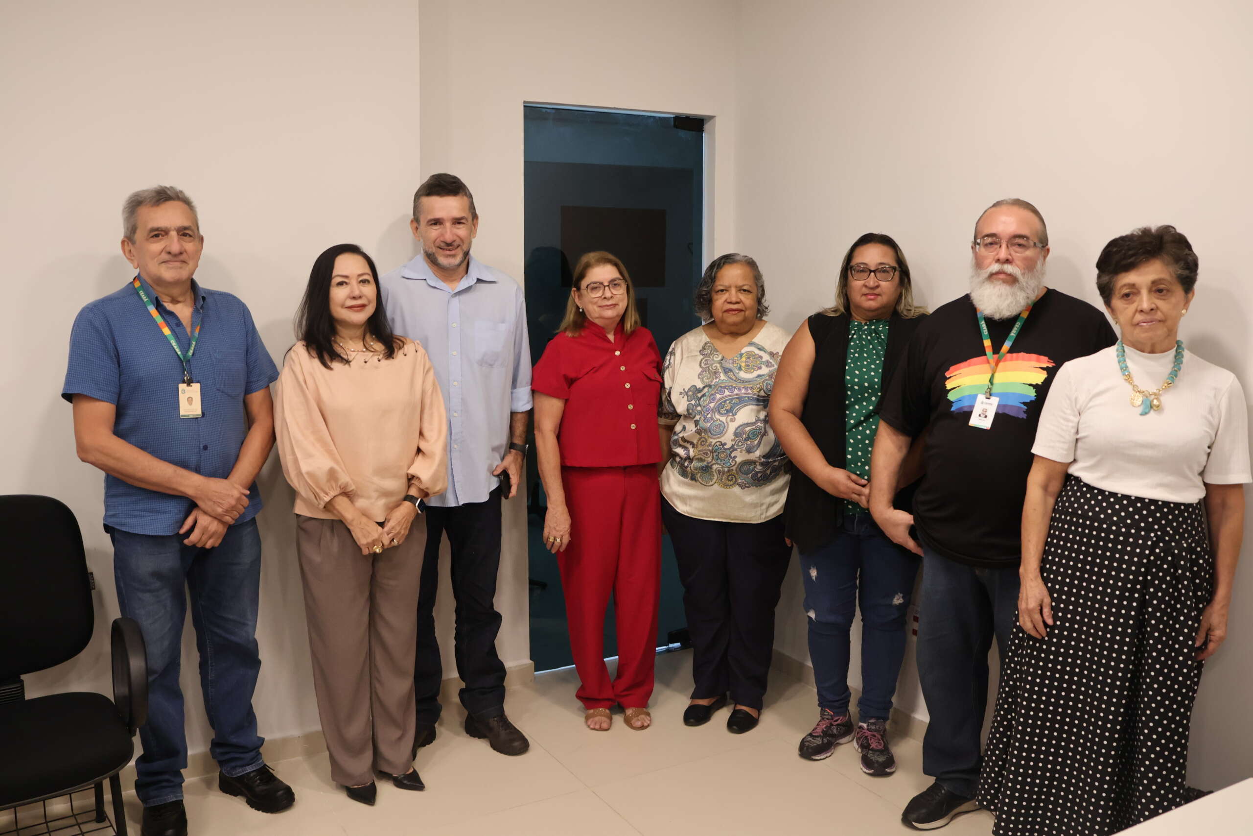 Comissão da Cipa no ato de empossamento, na Sala de Treinamentos da Etice. Da esquerda para a direita: Thomé Frota, Silvia Kataoka, Ricardo Leite, Gleibe de Almeida, Vera Carneiro, Rosângela da Silva, Irapuan Sales e Fernanda Rocha.