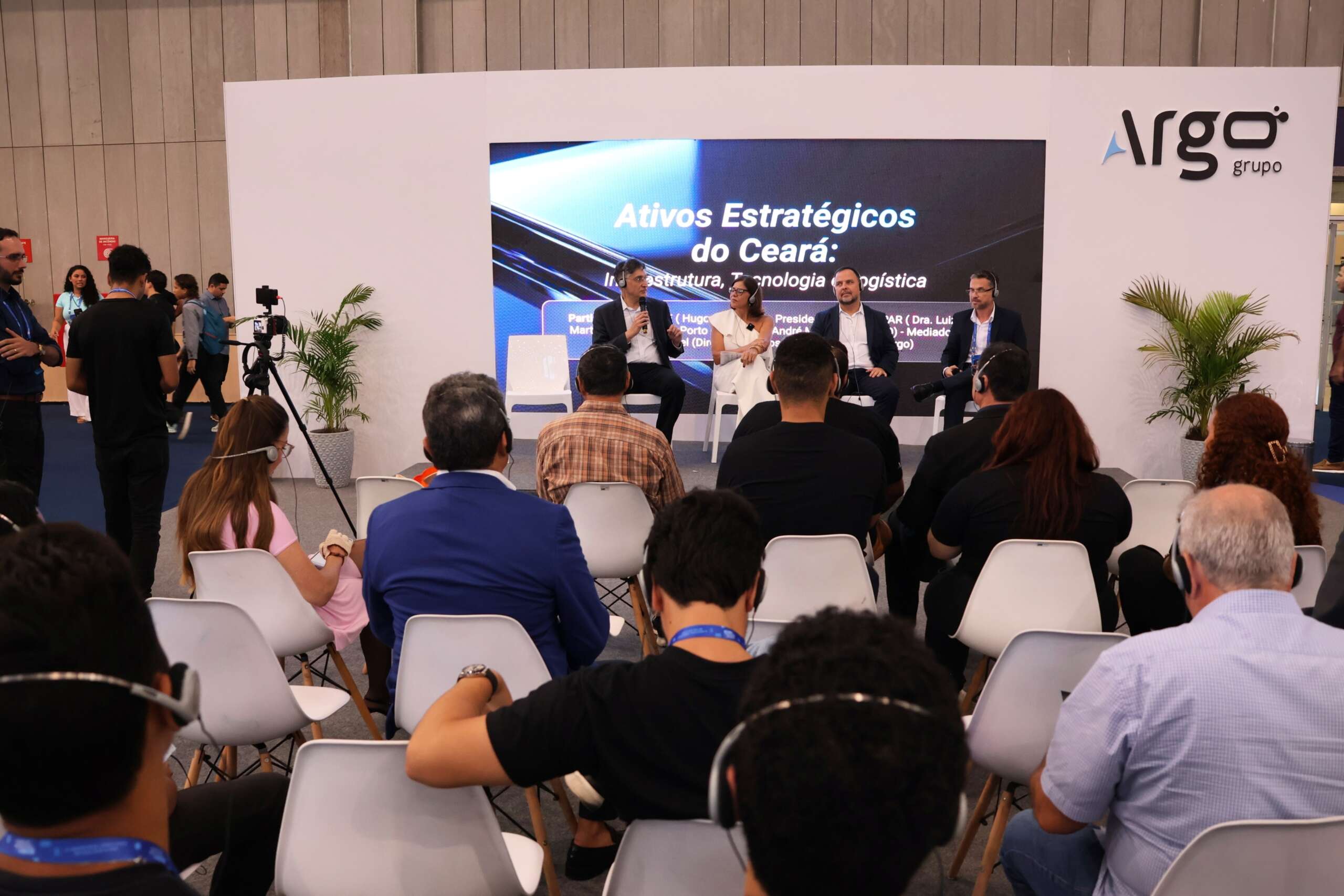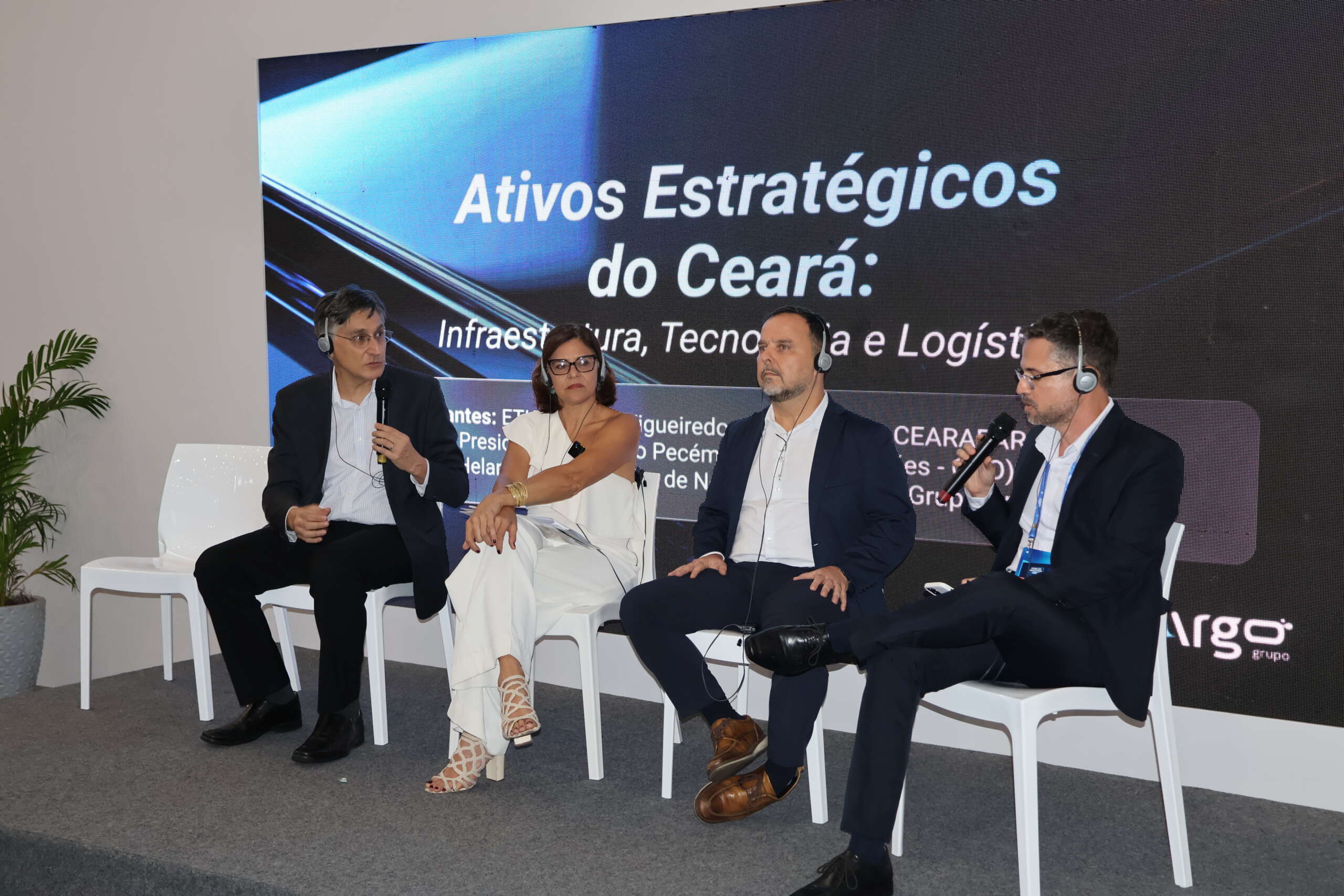 Nesta terça-feira (10), na Feira das Indústrias, realizada pela Federação das Indústrias do Estado do Ceará (FIEC) no Centro de Eventos do Ceará, foi discutido o tema Ativos Estratégicos do Ceará: Infraestrutura, Tecnologia e Logística, no Painel Estratégico de Desenvolvimento Econômico, com gestores de empresas do governo do estado com atuação nesta área. O debate teve a participação do presidente da Empresa de Tecnologia da Informação do Ceará (Etice), Hugo Figueirêdo, da presidente da CearáPar, Luiza Martins, e do diretor Comercial do Porto do Pecém, André Magalhães, com mediação de Helano Rangel, diretor de Novos Negócios do Grupo Argo.