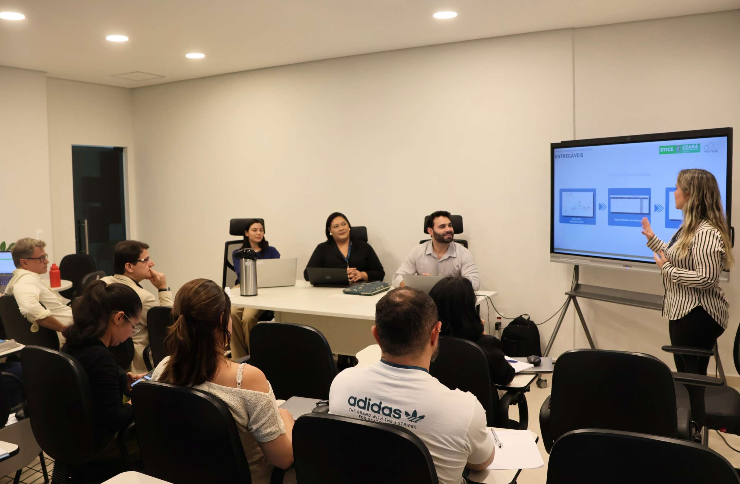 Na tarde desta segunda-feira (23), ocorreu, na Sala de Treinamento, a reunião que serviu como pontapé inicial (kickoff) para Análise e Redesenho de Processo Crítico da Etice. Conduzido pelos técnicos Diogo Fontenele e Emanuele Ribeiro, da empresa Portfólio Consultoria Empresarial Ltda., o evento concentrou as principais áreas interessadas, orientando a metodologia, abordagem e escopo dos trabalhos.