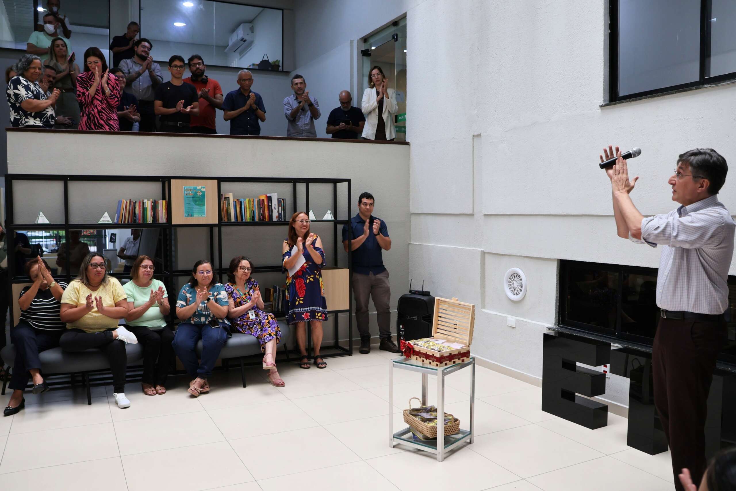 O presidente Hugo Figueirêdo parabenizou às colaboradoras, frisando a importância da atuação feminina na Etice e destacando que o valor de salários pagos a homens e mulheres em mesmos cargos dentro da Empresa é praticamente o mesmo. Ele passou a palavra para Jeane Peixoto, gerente de Planejamento, que afirmou: “atualmente, temos diversas mulheres em cargos de gestão, o que é ótimo, pois estamos trazendo excelentes resultados, e é gratificante ver o quanto a presidência valoriza isso. Que possamos ocupar mais espaços, e parabéns a todas nós”.