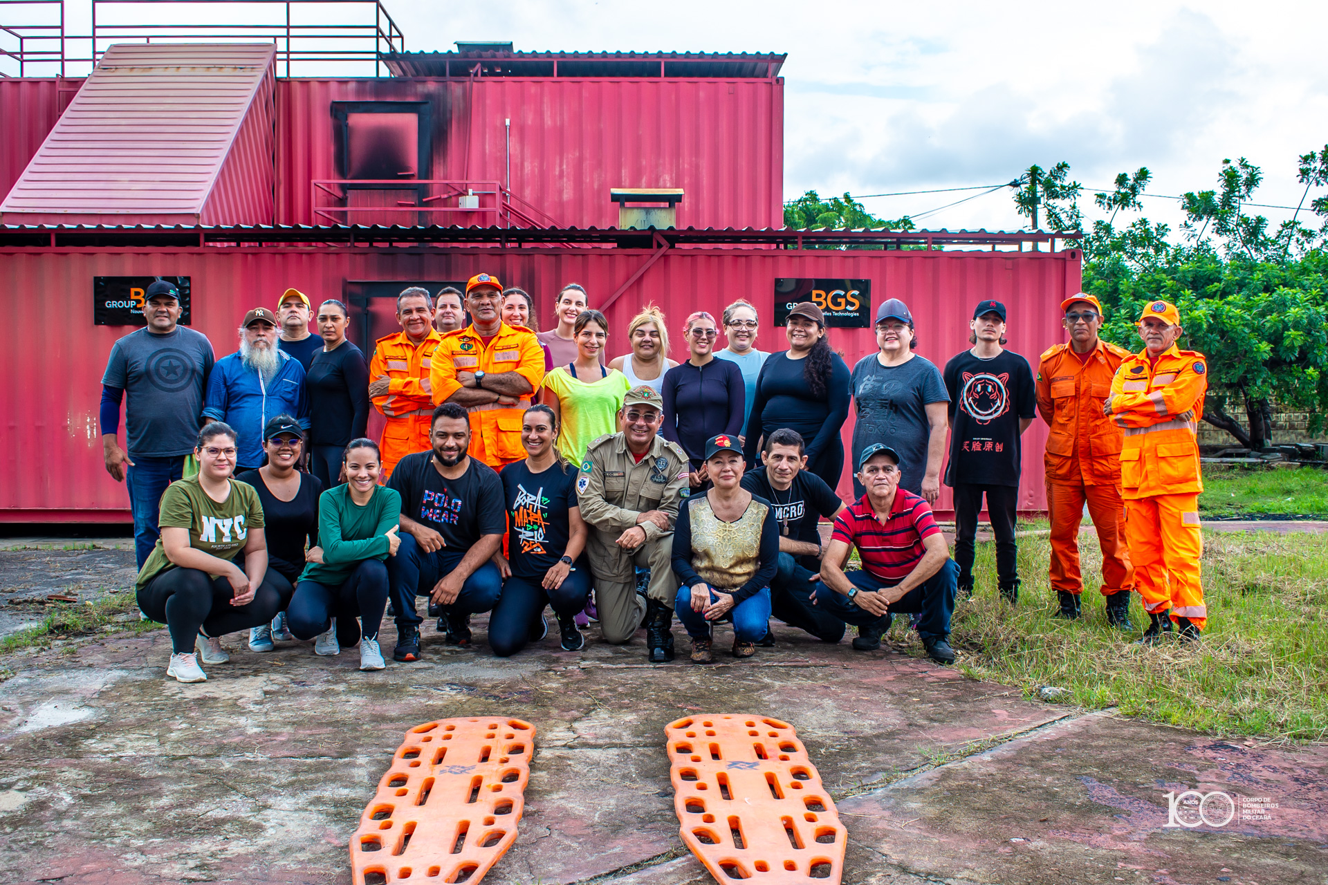 Já no dia 15, a formação seguiu com atividades práticas realizadas no Quartel da 4ª Companhia do 1º Batalhão do Corpo de Bombeiros Militar (4CIA/1BBM), das 8h às 12h. Sob orientação dos instrutores da corporação, os participantes puderam vivenciar simulações reais de combate a incêndios e aplicar técnicas de primeiros socorros, fortalecendo a confiança e a capacidade de resposta diante de situações críticas.