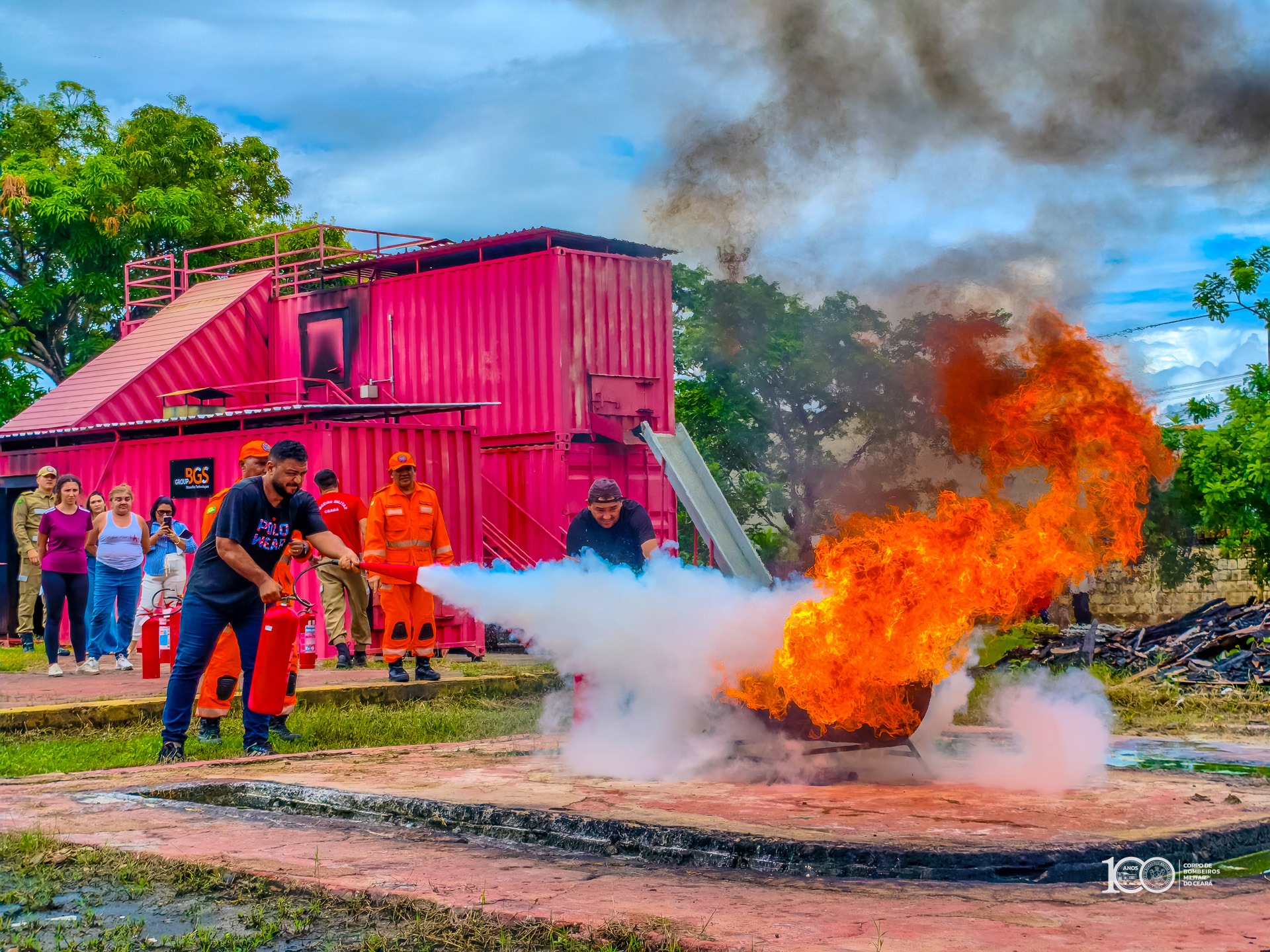 A etapa teórica ocorreu no dia 14, abordando conteúdos fundamentais como a teoria do fogo, formas de propagação, classes de incêndio, métodos de combate e ações preventivas. O material também destacou a importância de compreender os riscos no ambiente corporativo e a necessidade de preparo adequado para agir com rapidez e eficiência em casos de emergências, evidenciando que o conhecimento técnico é essencial para evitar que pequenos focos se transformem em grandes incidentes.