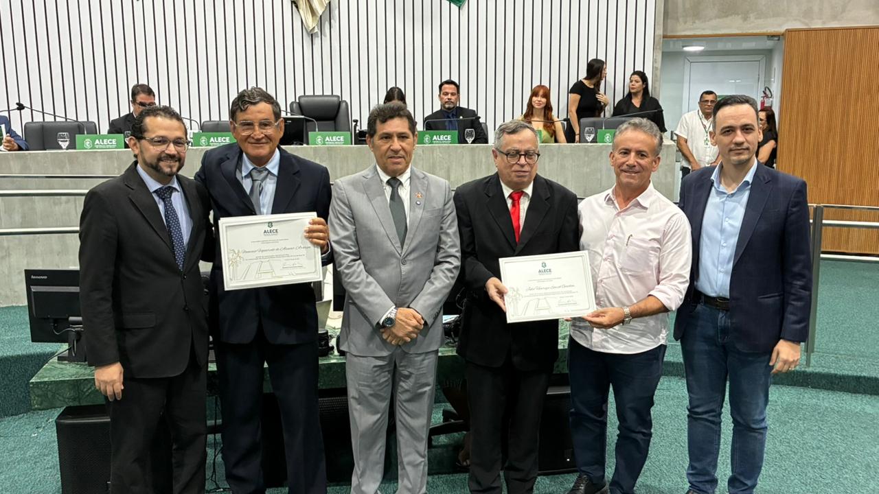O gerente de Comunicação e Marketing da Empresa de Tecnologia da Informação do Ceará (Etice), jornalista Flamínio Araripe, foi um dos homenageados na sessão solene que celebrou os 30 anos da Revista Plenário e os 20 anos da Alece TV, órgãos que cobrem as pautas institucionais do legislativo estadual. O evento ocorreu na manhã desta segunda (27). Flamínio foi o primeiro editor da revista. A iniciativa foi do presidente da Casa, deputado Romeu Aldigueri (PSB), e do deputado De Assis Diniz (PT).